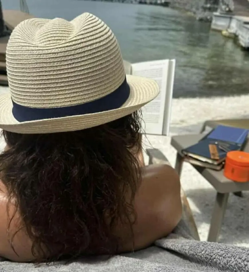 Fotoda Anna Akopyan sahildə kitab oxuyur. O, Göyçə gölünün ətrafında dincəldiyini bildirib.