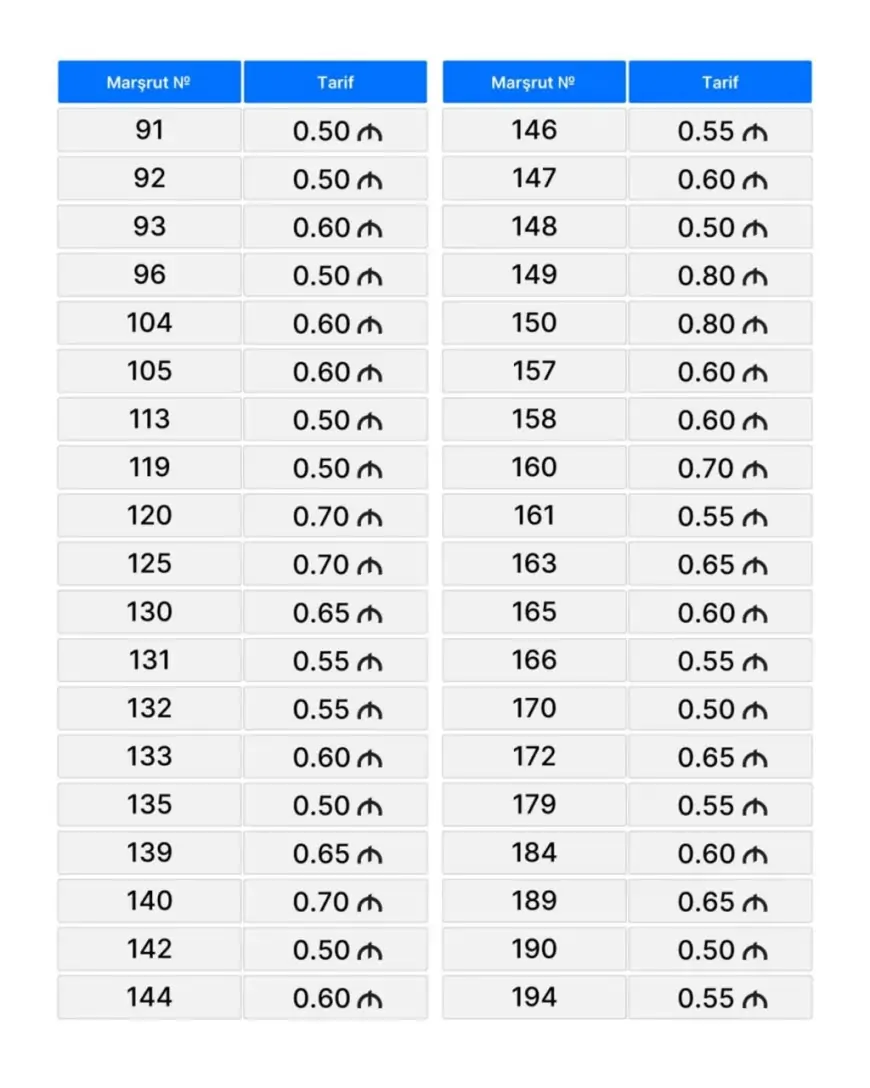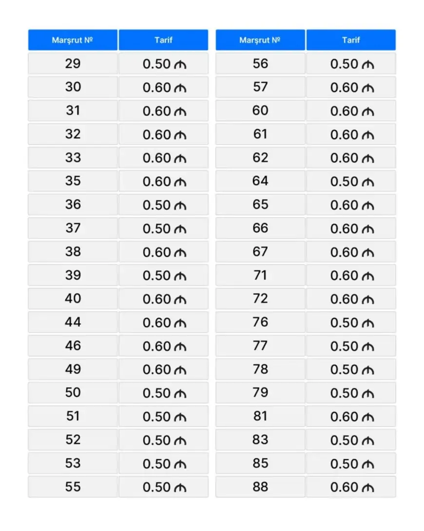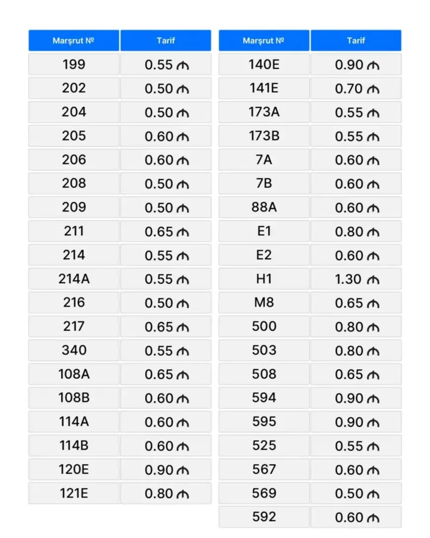 Bakıda marşrut avtobuslarında QİYMƏTLƏR DƏYİŞDİ - CƏDVƏL + FOTO