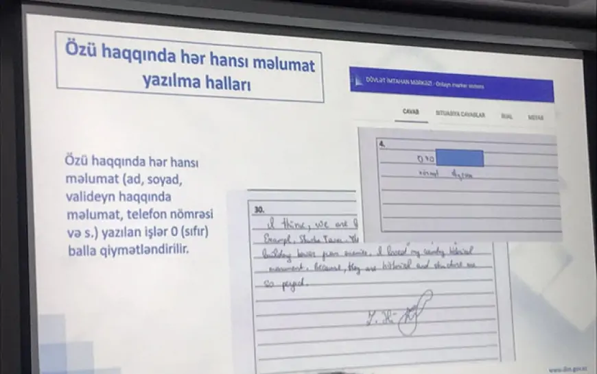 SAVASHMEDİA.az-ın məlumatına görə, bu gün KİV nümayəndələrinin iştirakı ilə imtahanlarda istifadə olunan yazılı cavab tələb edən tapşırıqların yoxlanılma prosesini müşahidə etmək üçün təşkil olunan mediaturda maraqlı fakt aşkarlanıb.