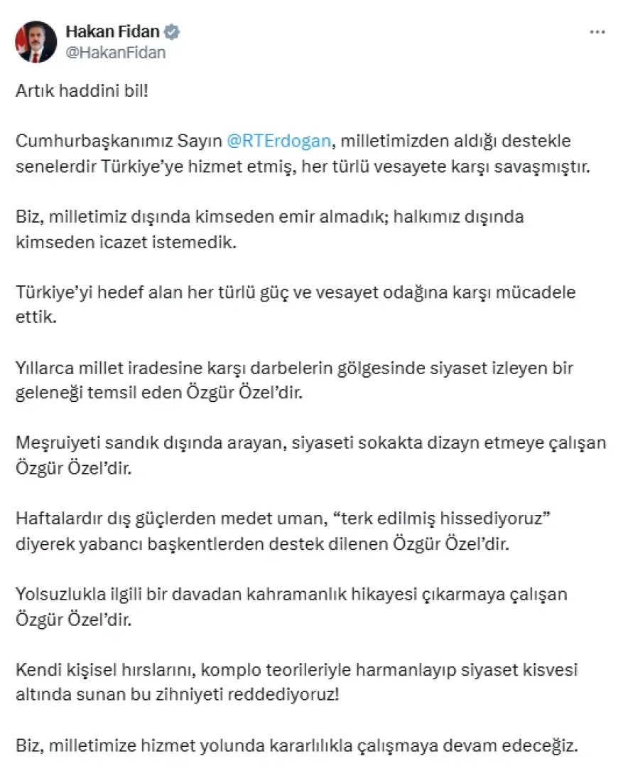 CHP sədrinin sözlərinə dözmədi, bunları yazdı - Hakan Fidanın paylaşımı