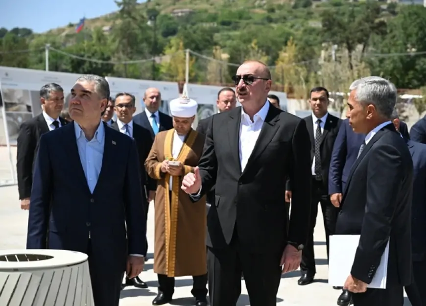 Azərbaycan Respublikasının Prezidenti İlham Əliyev və Türkmənistan Xalq Məsləhətinin sədri Qurbanqulu Berdiməhəmmədov iyulun 17-də Yeni Şuşa məscidində tikinti işlərinin gedişi ilə tanış olublar.