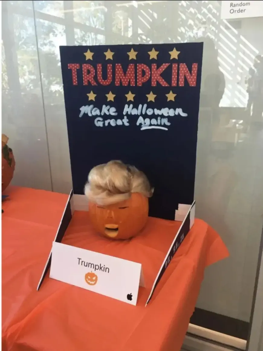 Bundan başqa malikanədə “Halloween” bayramına uyğun olaraq Trampa oxşadılmış balqabaq (TRUMPKİN) və lövhə üzərində Trampın seçki şüarı “Amerikanı Yenidən Ən Böyük Et”in (Make America Great Again /MAGA) şəkildəyişmiş forması “Halloween”i Yenidən Ən Böyük Et” (Make Halloween Great Again) yazısı olub.