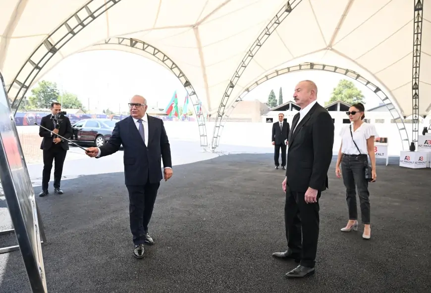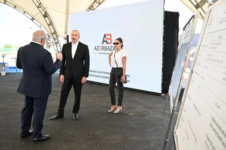 Azərbaycan Prezidenti İlham Əliyev və birinci xanım Mehriban Əliyeva avqustun 20-də Gəncə şəhərində “Azerbazalt” MMC-nin bazalt məhsullarının istehsalı müəssisəsinin təməlqoyma mərasimində iştirak ediblər.