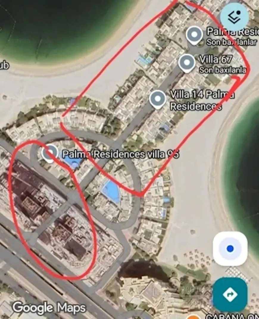"Həmin ərazidə Azərbaycanın fövqəladə hallar naziri Kəmaləddin Heydərovun oğulları Nicat və Tale Heydərovlara məxsus, müharibədən əvvəlki dəyəri 30 milyon dollar dəyərində olan 6 rezidensiya yerləşir. Raket zərbəsindən ərazidə böyük dağıntı baş verib. Zərbənin təsiri o qədər güclü olub ki, ətrafdakı binalara, o cümlədən Heydərovlara məxsus azı 2 rezidensiyaya zərər dəyib, şüşələri sınıb. Raket zərbəsi zamanı süni adada 4 nəfərin yaralandığı yerli hökumətin media ofisi tərəfindən təsdiqlənib.