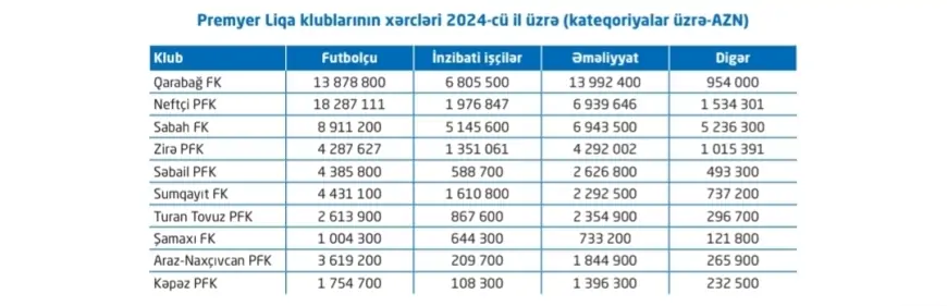 Maraqlıdır ki, "Neftçi" futbolçularına daha çox maş verib. Bakılılar 2024-cü ildə oyunçularına ümumilikdə 18 milyon manatdan çox məvacib verib.