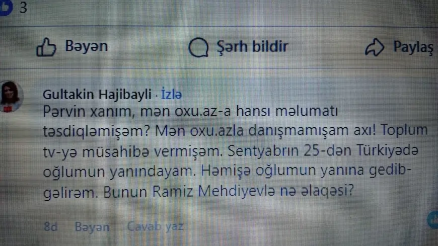 Xatırladaq ki, bundan öncə Gültəkin Hacıbəylinin Ramiz Mehdiyevlə işbirliyinin ortaya çıxması səbəbindən ölkədən qaçdığı haqda məlumat yayılmışdı.
