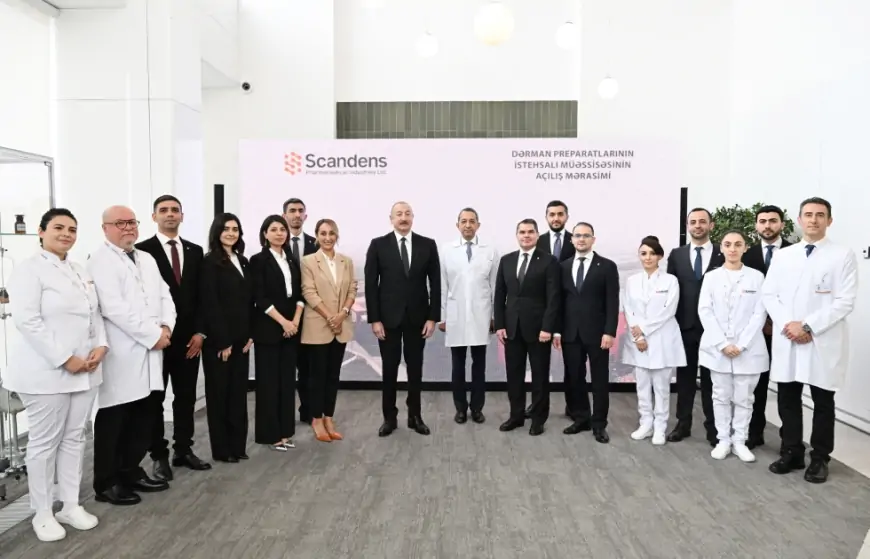 Azərbaycan Prezidenti İlham Əliyev Abşeron rayonunun Hökməli qəsəbəsində "Scandens Pharmaceutical Industries Ltd" MMC-nin dərman preparatları istehsalı müəssisəsinin açılışında iştirak edib.