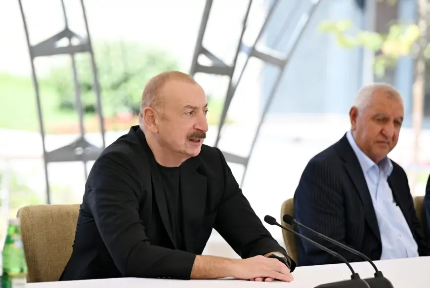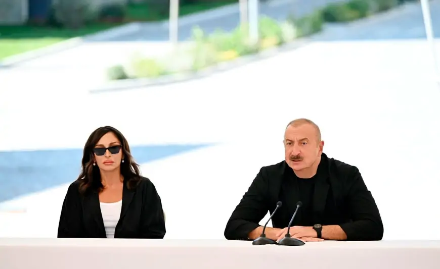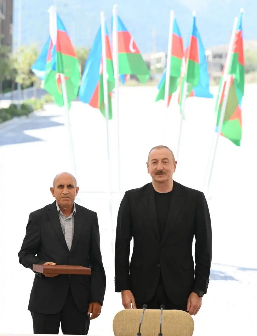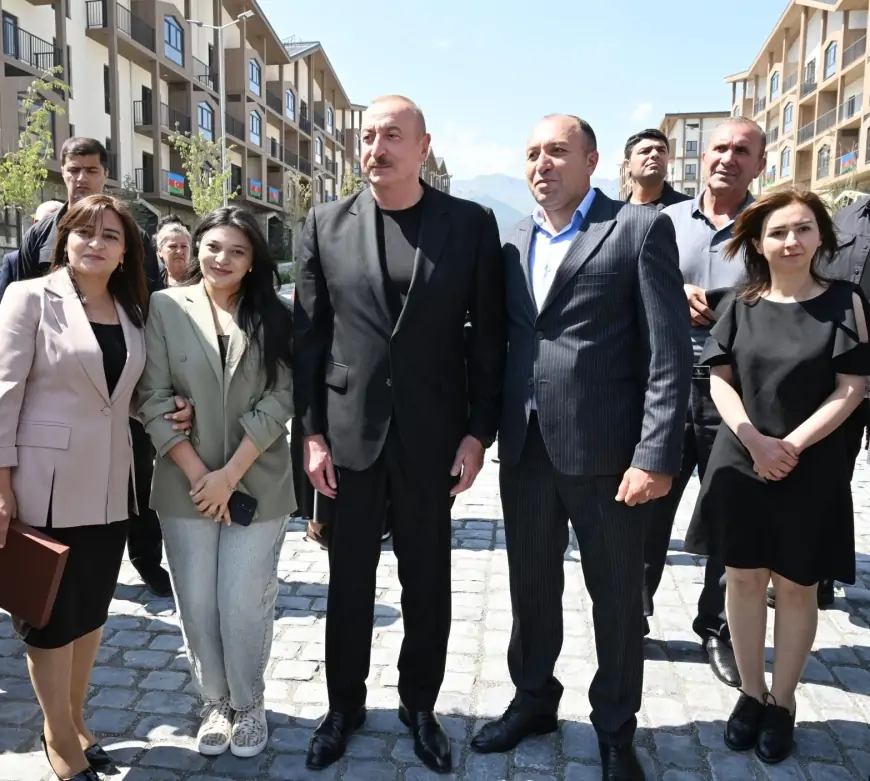Bizim işimiz quruculuqdur. Onlar bütün şəhər və kəndlərimizi viran qoyublar. Kəlbəcər şəhərində bir dənə salamat bina qalmamışdır. Kəlbəcərin heç bir kəndində bir dənə də bina qalmamışdır. O, vəhşilik idi. O, insanlığa sığmayan hərəkət idi və bunu bir nəfər yox, 10 nəfər yox, kütləvi surətdə edirdilər. Onlar gərək bu məsələlərlə məşğul olsunlar, hansı cəmiyyətdə yaşayır Ermənistan? O cəmiyyət ki, işğal dövründə talançılığı özü üçün əsas gəlir mənbəyi etmişdir. Bu cəmiyyət xəstədir və mən bunu açıq deyirəm. Mən heç kimi təhqir etmək istəmirəm. Biz onlara nə etmişik ki, nə pislik etmişik ki, bu qədər vəhşiliklə üz-üzə qalaq?! Bütün şəhər və kəndlər dağıdılıb, məscidlər dağıdılıb, təhqir edilib, insanlar qətlə yetirilib, öldürülüb, yandırılıb. Hətta İkinci Qarabağ müharibəsindən sonra bizdən vasitəçilər tərəfindən vaxt istəmişdilər, burada öz şələ-şülələrini yığmaq üçün. Biz hətta vaxt da verdik onlara. Nə etdilər? Yandırdılar, ağacları qırdılar. İnsan bunu edər? Axı, bunu təkcə separatçıların başçıları etməyiblər. Kütləvi surətdə ediblər. Yəni, biz bilməliyik ki, kiminlə üz-üzəyik, bizim qonşumuz kimdir. Keçmişimizi heç vaxt unutmamalıyıq və ayıq olmalıyıq. Əminəm ki, bütün bu amillər imkan verəcək ki, üstünlük hər zaman bizdə olsun. Bu gün bunu yenə də deyirəm, biz qalib xalq kimi bəyan edirik. Biz o pisliyi, vəhşiliyi unutmayacağıq. Ancaq biz bundan sonra heç kimlə müharibə aparmaq fikrində deyilik. Əgər bizə qarşı hər hansı bir təhlükə çıxarsa, onda yenə də bizim dəmir yumruğumuzu hər kəs görəcək. Bu gün bu gözəl binaların ətrafında bizim görüşümüz də çox böyük rəmzi məna daşıyır. Onlar buranı dağıdıblar, biz isə qurub-yaratmışıq və sizi bu münasibətlə bir daha təbrik edirəm. Rahat yaşayın, sizə cansağlığı, xoşbəxtlik arzulayıram. Sağ olun.