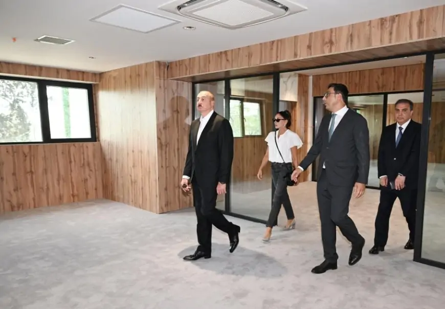 Prezidentlə xanımı Gəncə stadionunda görülən işlərlə tanış oldular - FOTOLAR + YENİLƏNİB