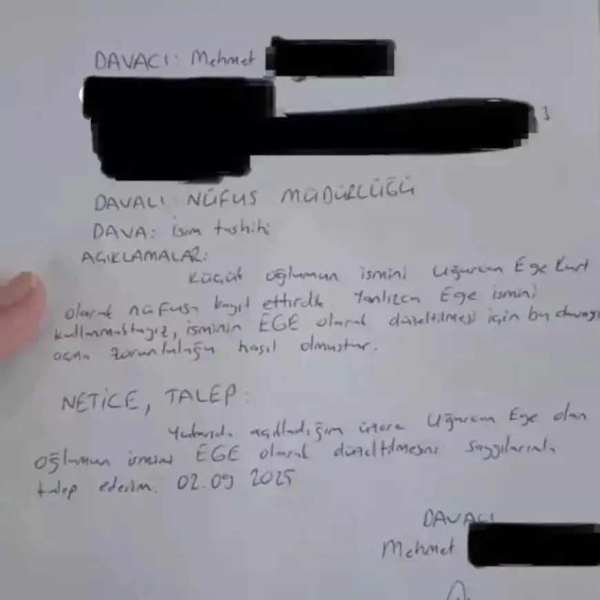 Belə ki, Mehmet adlı azarkeş futbolçunun şərəfinə Uğurcan Ege adlandırdığı oğlunun adının dəyişdirilməsi üçün məhkəməyə müraciət edib.