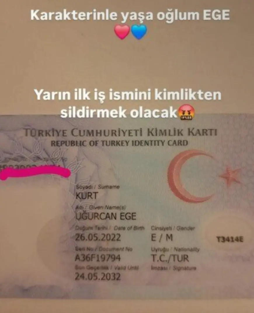 “Biz Uğurcan Çakırı hədsiz dərəcədə çox sevdik, amma o bizi yarı yolda qoydu. Sabah ilk işim adını şəxsiyyət vəsiqəsindən sildirmək olacaq. Artıq oğlumun adı Egedir. Xarakterinlə yaşa, oğlum Ege!”