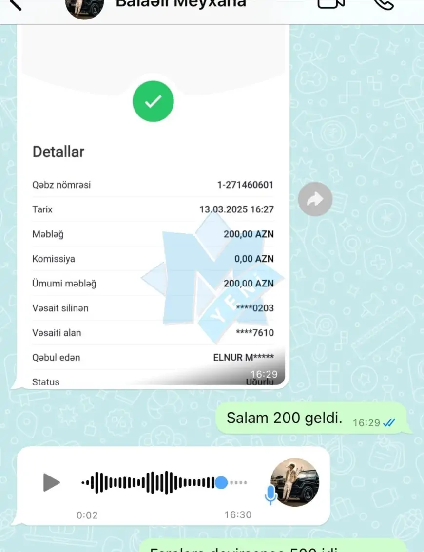 O əlavə edib ki, ilkin razılaşmaya əsasən, zədələnmiş stop işıqlarını özü tapıb almalı, Balaəli isə həmin hissələrin dəyərini ödəməli idi. Lakin üç aydan çox vaxt keçməsinə baxmayaraq, yalnız 200 manat ödənilib, qalan məbləğ isə ödənilməyib: “Mənim bildiyimə görə, avtomobilin boya və təmir işlərini həyata keçirən ustalara da ödəniş olunmayıb, buna görə də iş yarımçıq qalıb. Nə özü, nə də köməkçisi artıq zənglərə cavab vermir”.