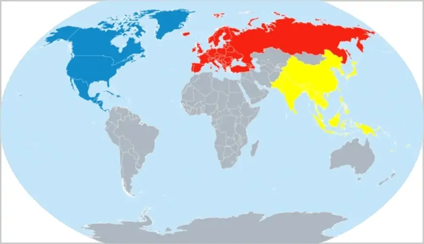Xəritədə həmçinin heç bir bloka aid edilməyən boz rənglərlə göstərilən ölkələr və regionlar da var: Cənubi Amerika, Afrika, Avstraliya və Yaxın Şərq.