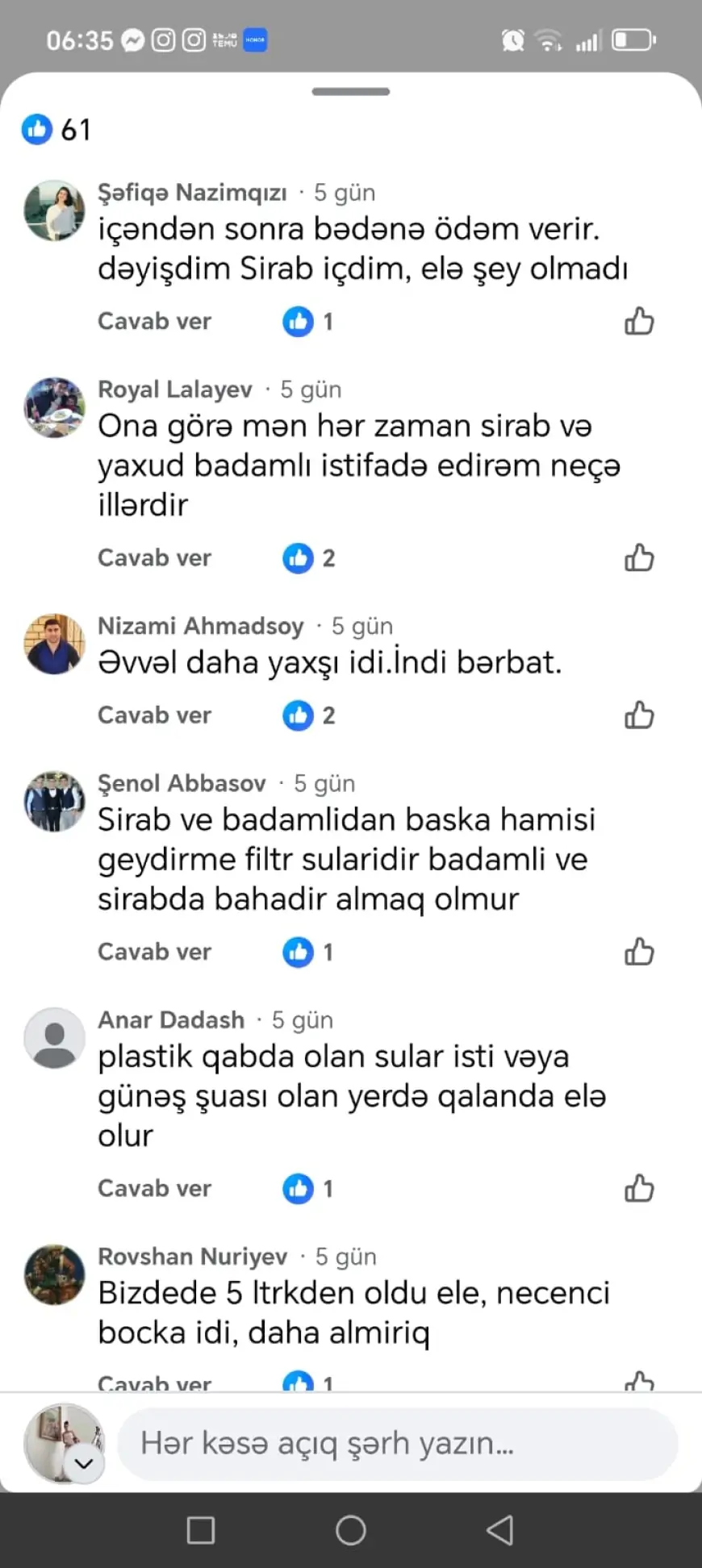 “Açıb içəndən sonra suyun tamı dəhşət dəyişir”.