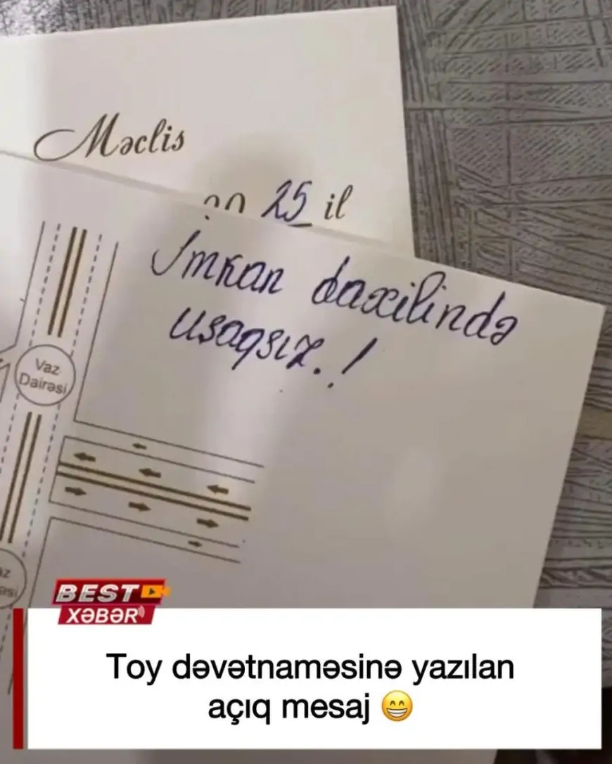 Toy dəvətnaməsinə yazılan bu MESAJ müzakirə yaratdı - FOTO