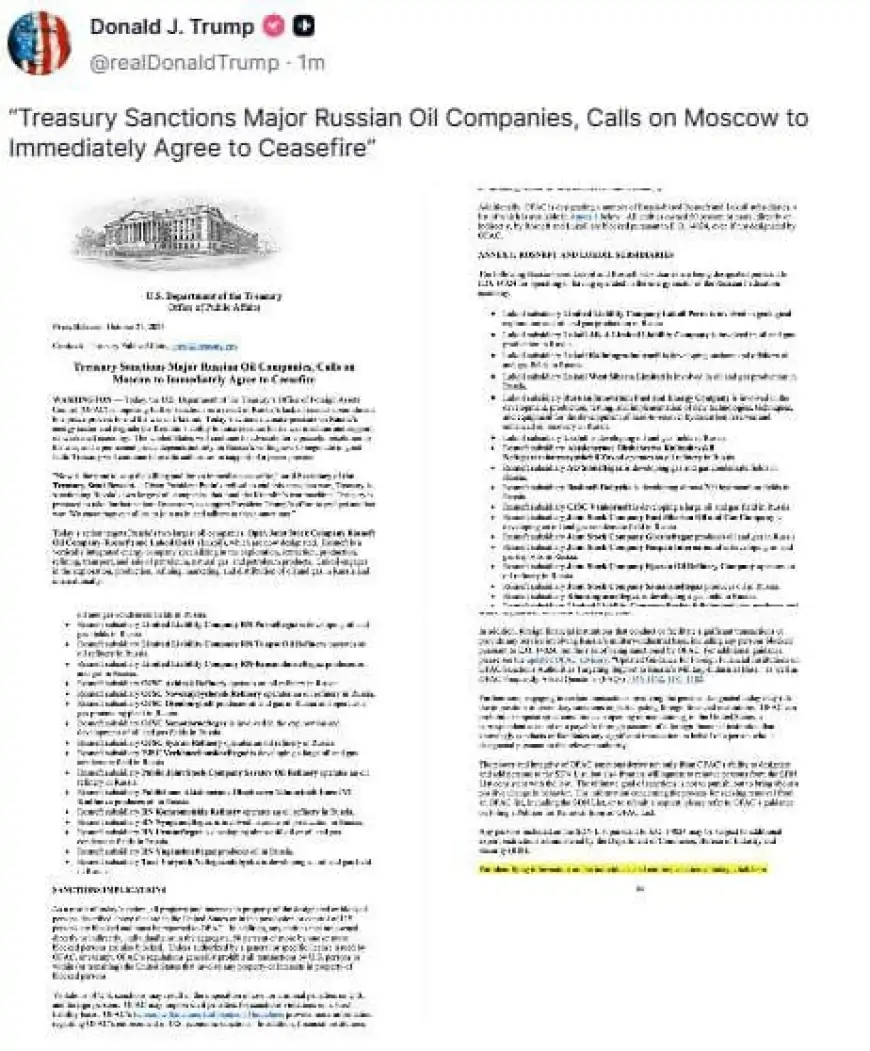 “Xəzinədarlıq Departamenti Rusiyanın iri neft şirkətlərinə qarşı sanksiyalar tətbiq edir və Moskvanı dərhal atəşkəslə razılaşmağa çağırır. Artıq ölümə son qoymaq vaxtıdır”. (musavat)