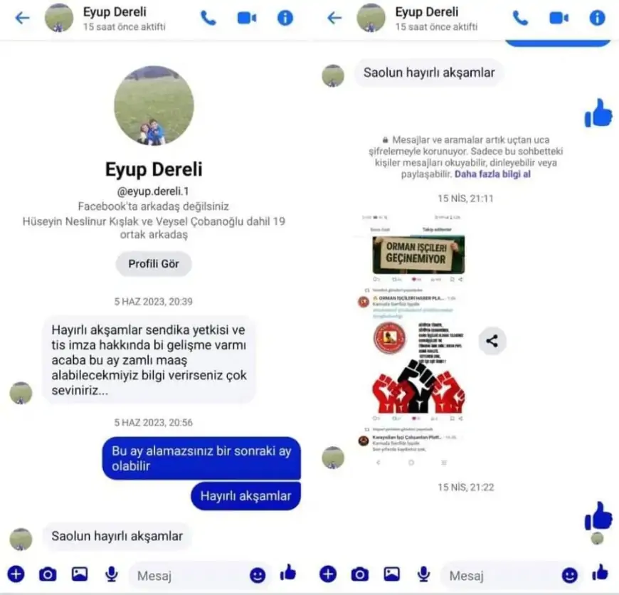 Derelinin qrupa göndərdiyi son mesaj isə mətbuatın yazdığı “Meşə işçiləri dolana bilmir” başlıqlı yazı olub.