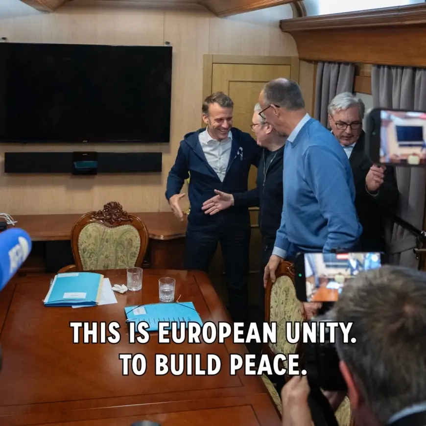 İkinci fotoda Avropa ölkələrinin liderlərinin nümayəndələri təsvir olunub və belə başlıq yazılıb: “Bu, sülhü təşviq etmək üçün Avropa birliyidir”.
