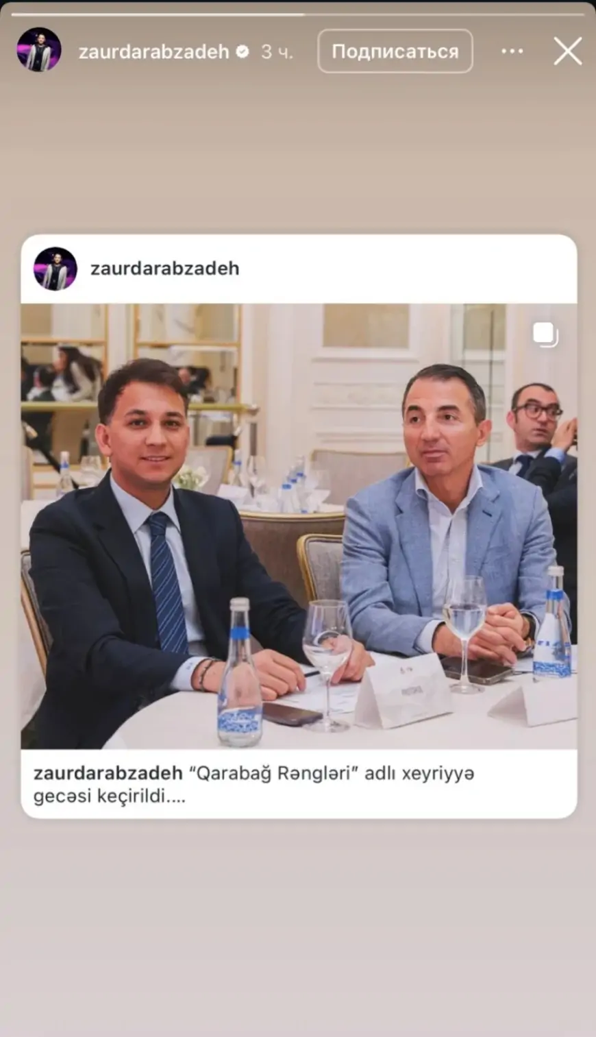 Zaur Darabzadə İnstaqram hesabında 2024-cü ilin İyun ayının 24-də Adnan Əhmədzadə ilə paylaşdığı fotosunu hekayə bölməsində yenidən paylaşıb.